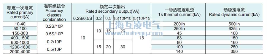| 型號 | 額定一次電流(A) | 準(zhǔn) 確 級 | 額定輸出(VA) | 短時(shí)熱電流(Ith)(kA) | 額定動(dòng)穩(wěn)定電流(Idyn)( kA) | ||||